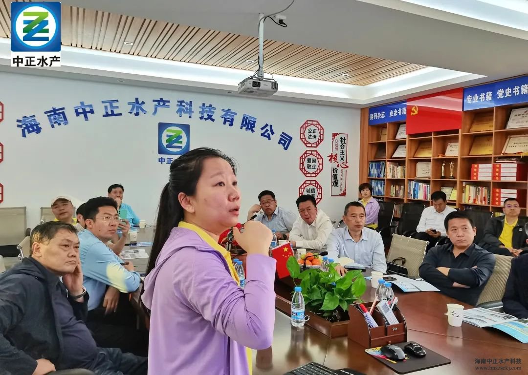 為了讓考察團更好的了解中正,座談會上,質控總監李婷從公司標準化生產、生物安保系統構建、公司運營狀況,及未來發展戰略和定位等方面,分享了公司的發展歷程以及在對蝦種苗產業上的執著信念。