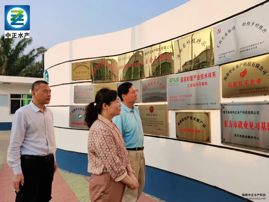 考察團在董事長雷夏雨、生產部副總經理宋永強的陪同下參觀了中正榮譽墻、生物餌料車間、親蝦車間、水處理系統等。考察團在參觀過程中認真聽取了生產副總宋永強的詳細介紹,通過交流與探討,為公司提出了寶貴指導意見。
