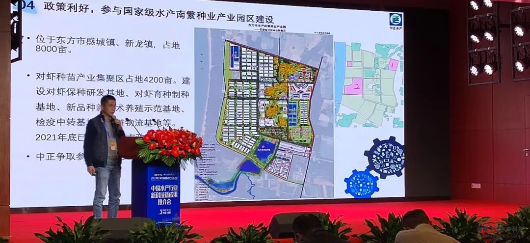 中正水產研發團隊顧問陳剛,根據中正在育種育苗板塊多年生物安;亟ㄔO總結積累出的豐富經驗,與現場人員分享了種苗管理的關鍵技術,作了”創新引領,打造一流水產南繁育種基地“的專題報告,讓大家更深入的了解“優質、穩定”的蝦苗是如何培育出來的。并對公司的運營情況、未來發展情況以及南繁種業產業園推進情況等多方面向大家進行詳細介紹。