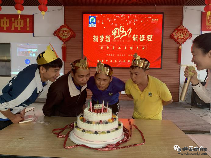 在這歡聚一堂的幸福時刻,公司還抽取了8位幸運員工送出華為手機作為新春禮品,將年會推向高潮。同時,借著年會的時機,王總代表公司為2月份生日的員工們送上生日祝福,大家插上蠟燭,全體員工唱響生日祝福歌,祝壽星們在生活里歲歲年年祥和平安,在工作中順順利利蒸蒸日上,愿全體中正人在中正這個大家庭里積極上進、生活安康,擁有滿滿的幸福感!