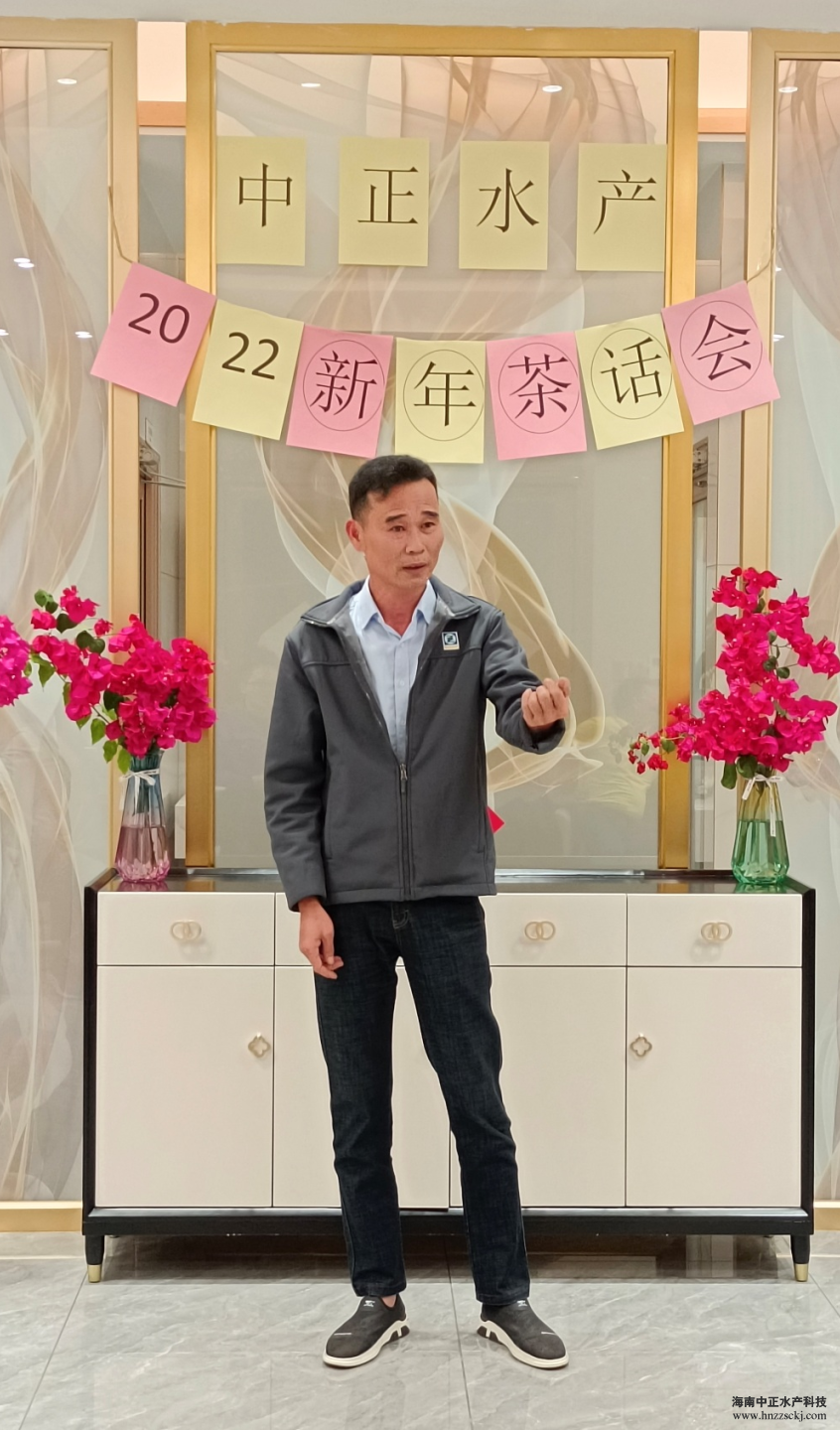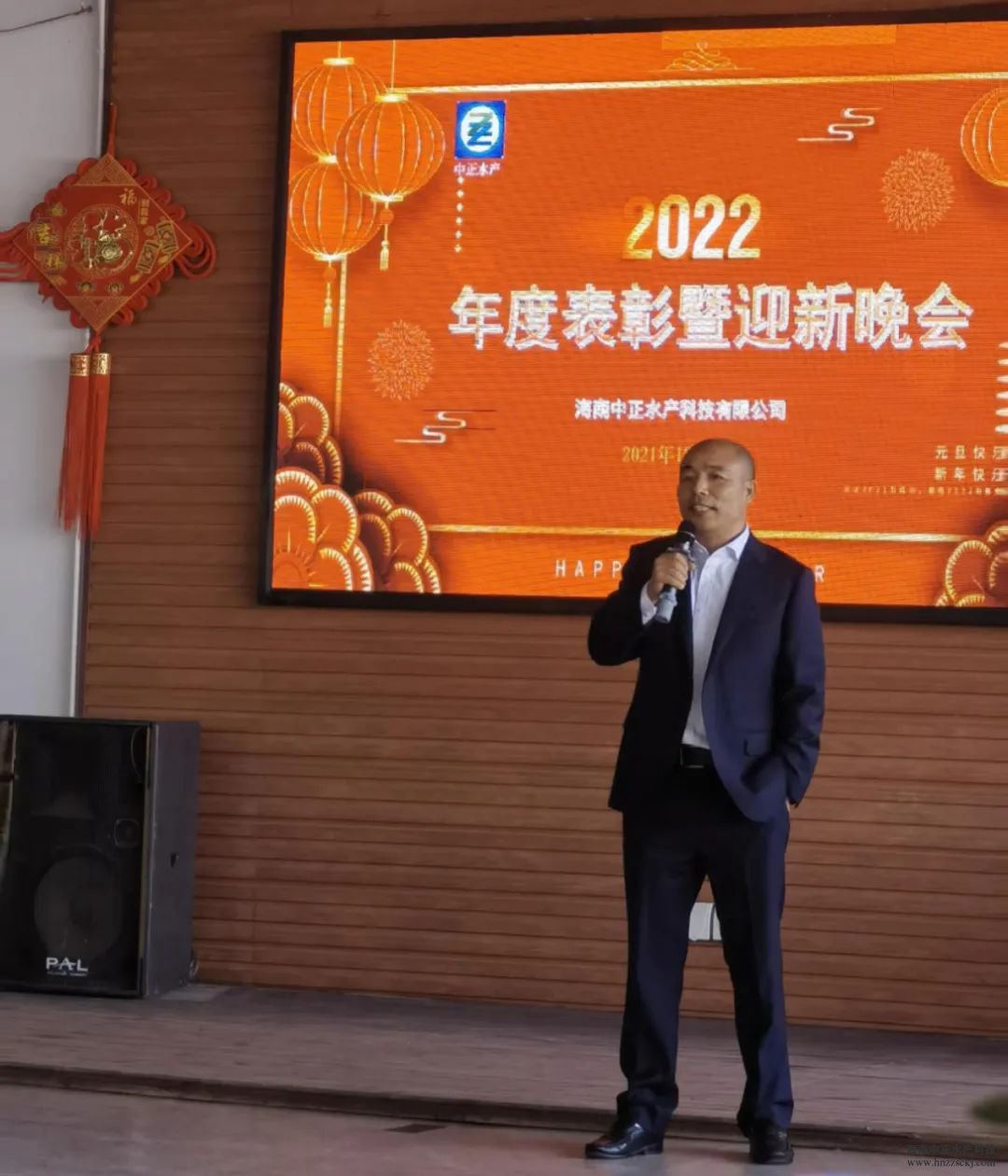典禮在董事長(zhǎng)雷夏雨精彩而溫情的致辭中拉開了帷幕! “值此辭舊迎新之際,我謹(jǐn)代表公司各位領(lǐng)導(dǎo),向全體員工致以新年的問(wèn)候和良好的祝愿,向全體員工家屬致以衷心的感謝和新年的祝福!對(duì)于2021年發(fā)生的一切,無(wú)論是困難還是成績(jī),我們都心懷感恩,感恩困難讓我們成長(zhǎng),感恩每個(gè)員工的辛勤工作和無(wú)私奉獻(xiàn),希望我們?cè)谧乃袉T工一起努力把中正打造成現(xiàn)代化的高科技水產(chǎn)企業(yè)。”